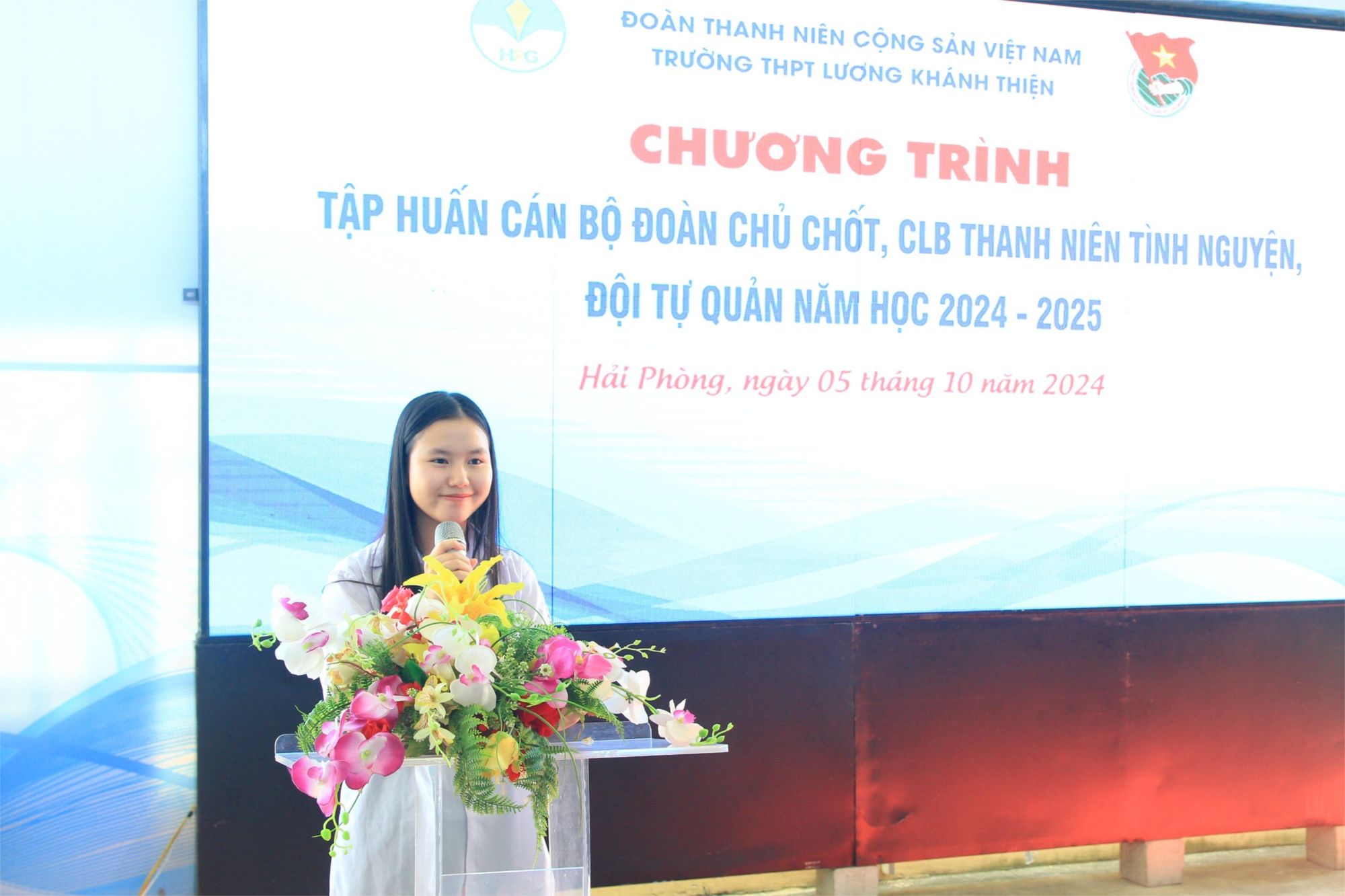 Chiều ngày 5/10/2024, Trường THPT Lương Khánh Thiện, thuộc Hệ thống Giáo dục HPG tổ chức chương trình “Tập huấn cán bộ Đoàn chủ chốt, Câu lạc bộ (CLB) thanh niên tình nguyện, Đội Tự quản năm học 2024 - 2025”.