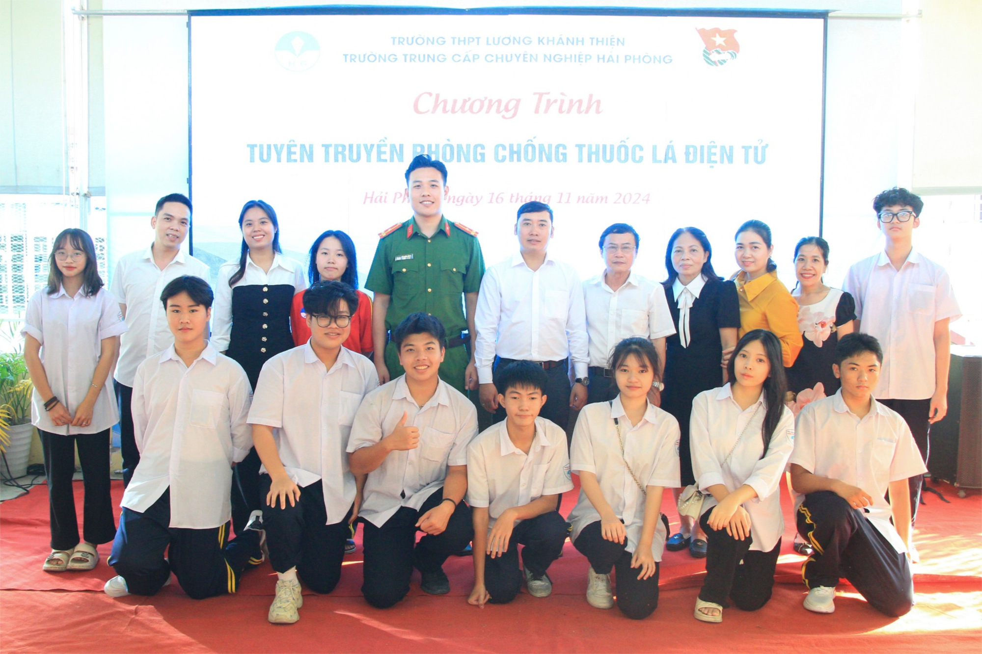 Chiều ngày 16/11/2024, Trường THPT Lương Khánh Thiện, thuộc Hệ thống Giáo dục HPG tổ chức chương trình“Tuyên truyền, giáo dục pháp luật về Thuốc lá điện tử trong trường học”. Tham dự chương trình có các đồng chí công an quận Hồng Bàng cùng toàn thể lãnh đạo, cán bộ, giáo viên và các em học sinh khối 10 nhà trường.